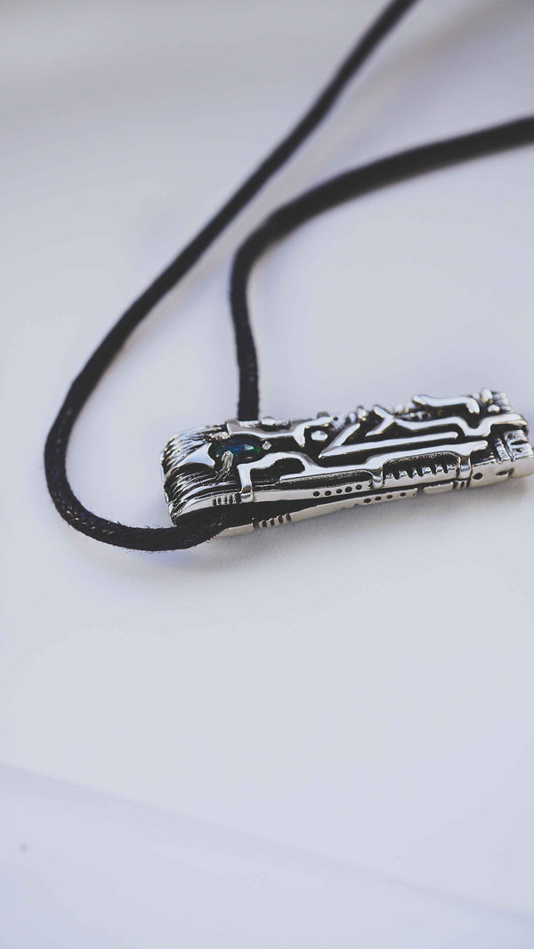Introducing our stunning handmade pendant featuring the Viking symbol Rune Laguz, crafted from sterling silver and adorned with a beautiful natural Black Opal. This exquisite piece of jewelry is more than just a necklace, it's a talisman and a symbol of protection.
